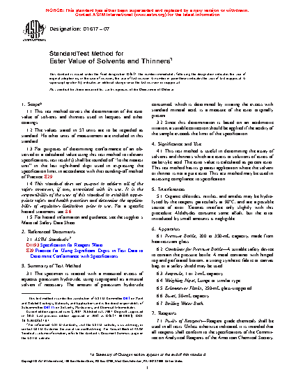 1.1 This test method covers the determination of the ester value of solvents and thinners used in lacquers and other coatings.