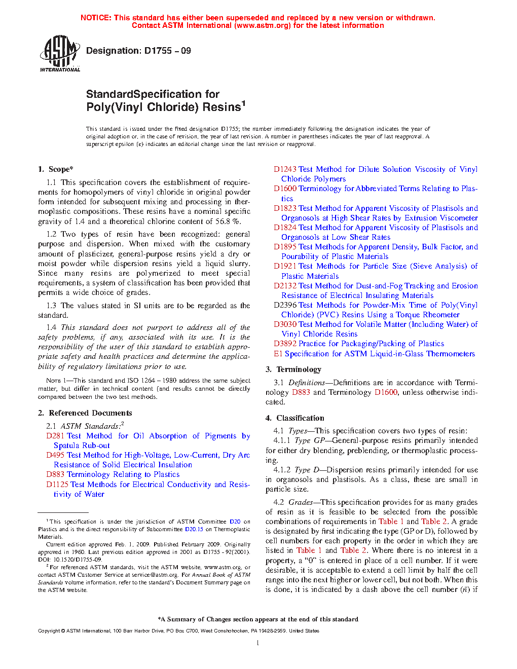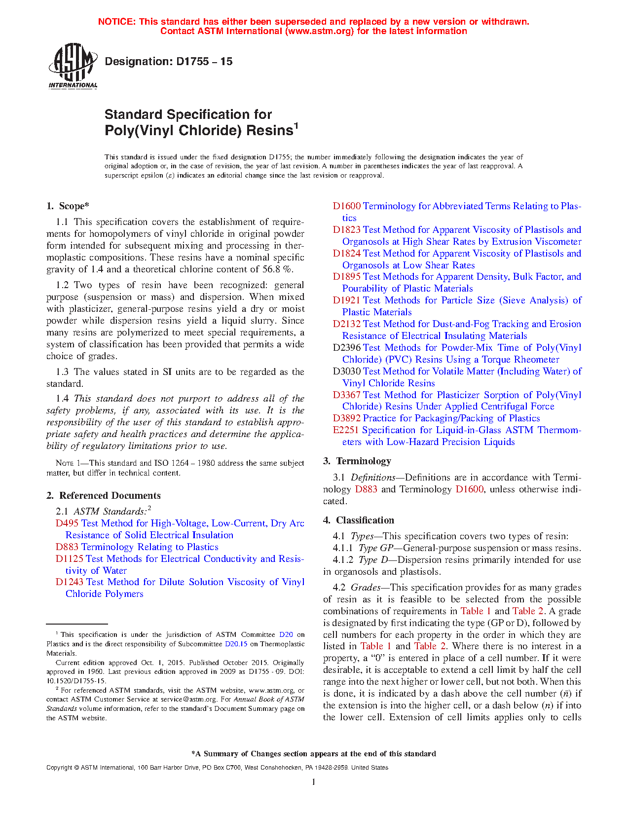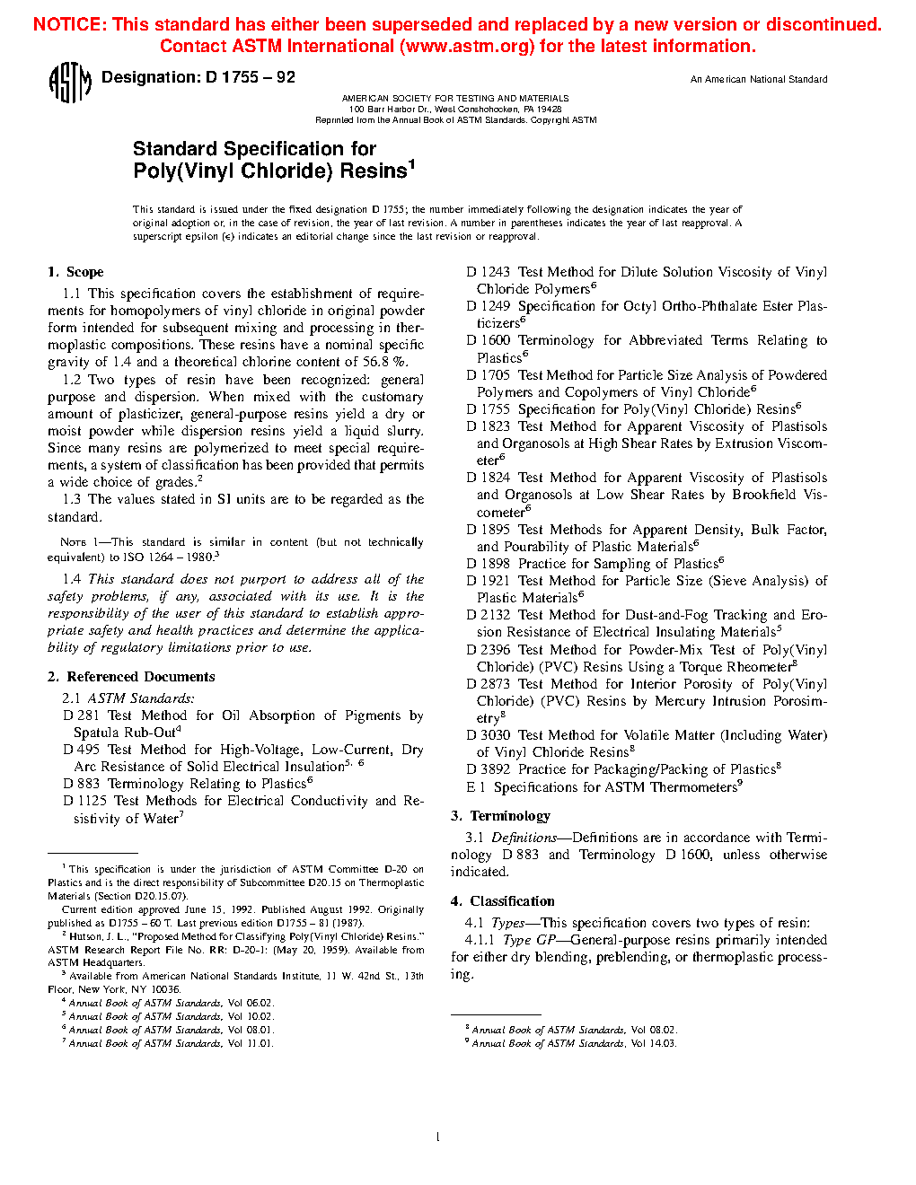 1.2 Two types of resin have been recognized: general purpose (suspension or mass) and dispersion. When mixed with plasticizer, general-purpose resins yield a dry or moist powder while dispersion resins yield a liquid slurry. Since many resins are polymerized to meet special requirements, a system of classification has been provided that permits a wide choice of grades.