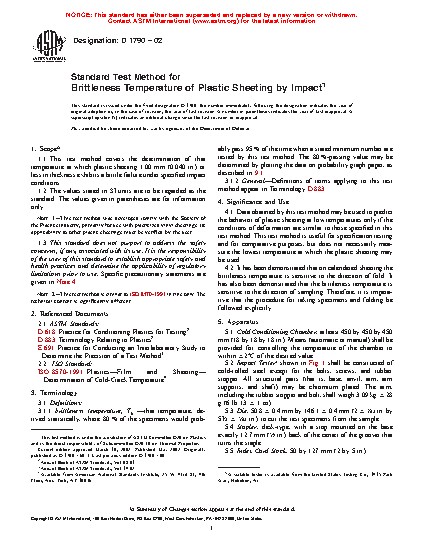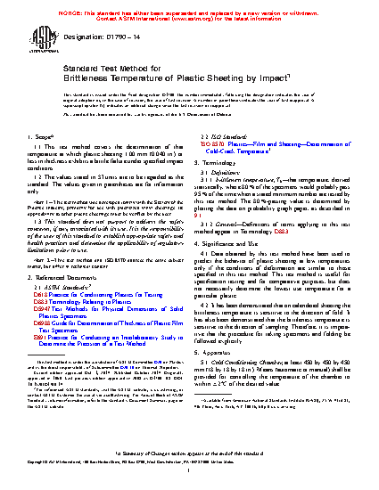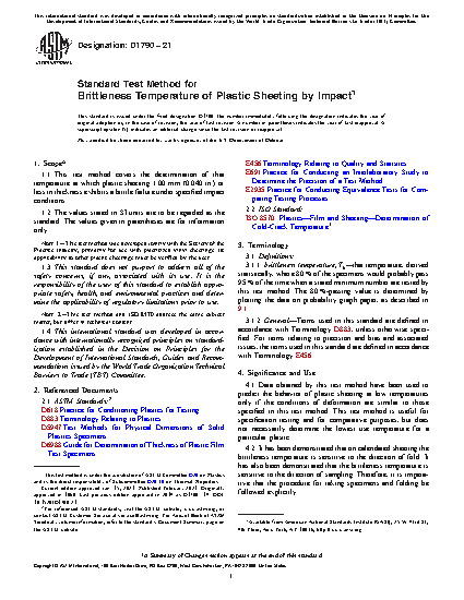 1.1 This test method covers the determination of that temperature at which plastic sheeting 1.00 mm (0.040 in.) or less in thickness exhibits a brittle failure under specified impact conditions.