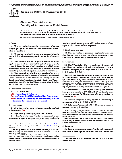 Standard Test Method for Density of Adhesives in Fluid Form