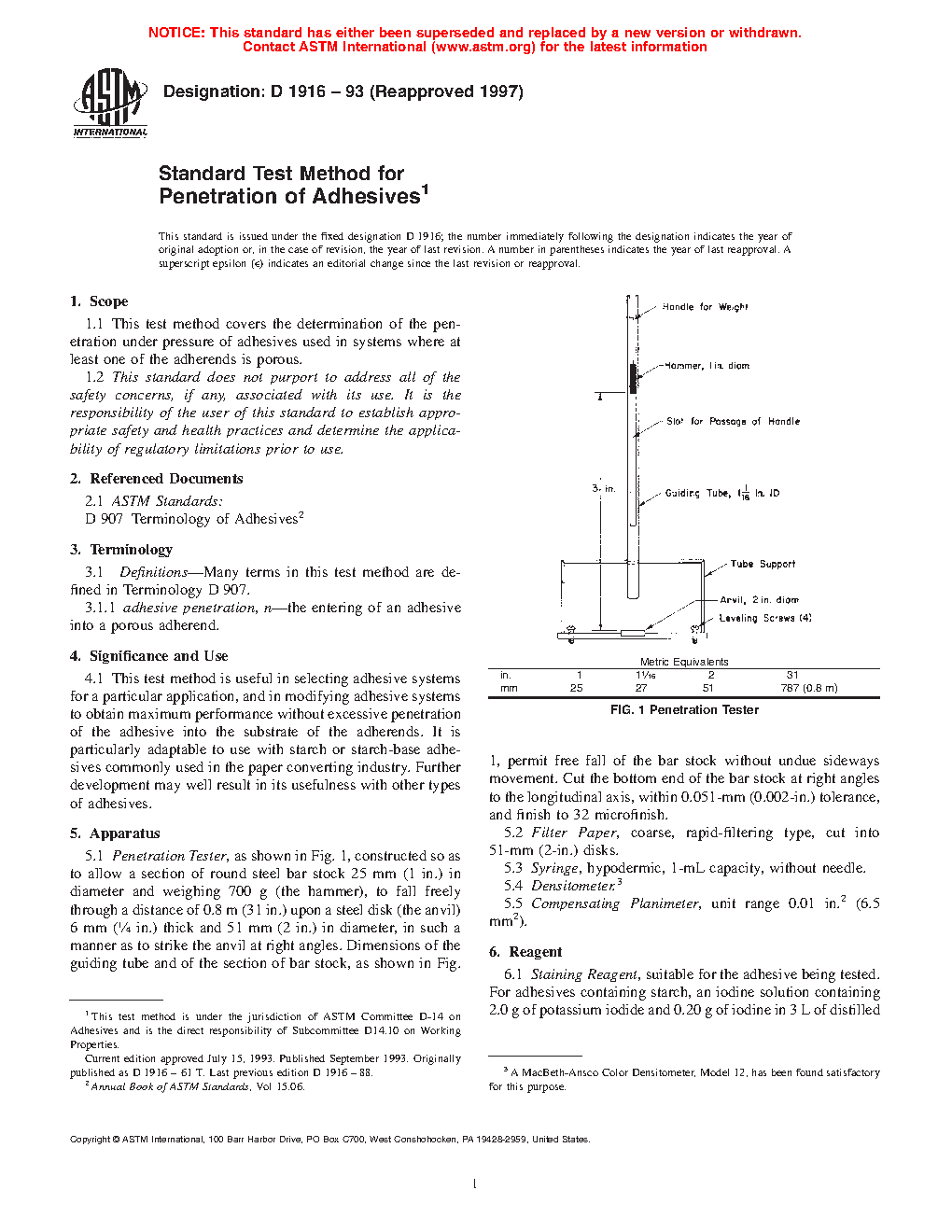 Standard Test Method for Penetration of Adhesives (Withdrawn 2005)