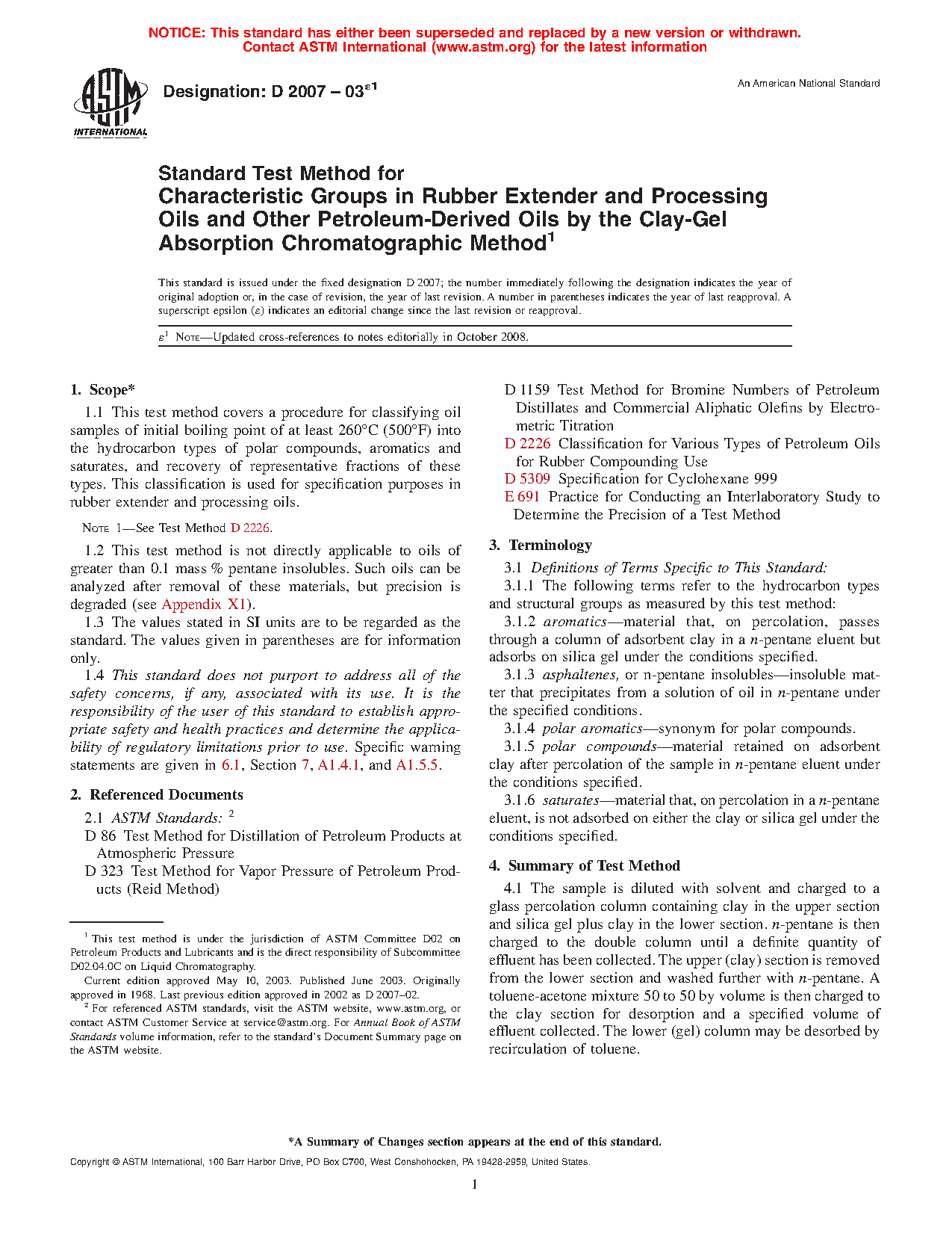 5.1 The composition of the oil included in rubber compounds has a large effect on the characteristics and uses of the compounds. The determination of the saturates, aromatics, and polar compounds is a key analysis of this composition.