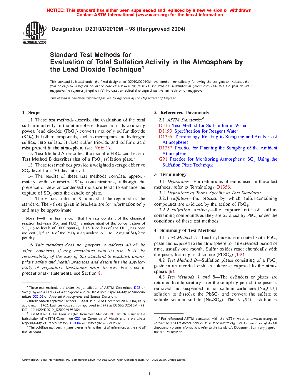 1.3 These test methods provide a weighted average effective SO2 level for a 30-day interval.