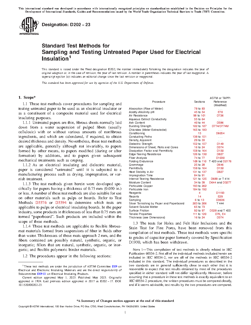 1.1 These test methods cover procedures for sampling and testing untreated paper to be used as an electrical insulator or as a constituent of a composite material used for electrical insulating purposes.