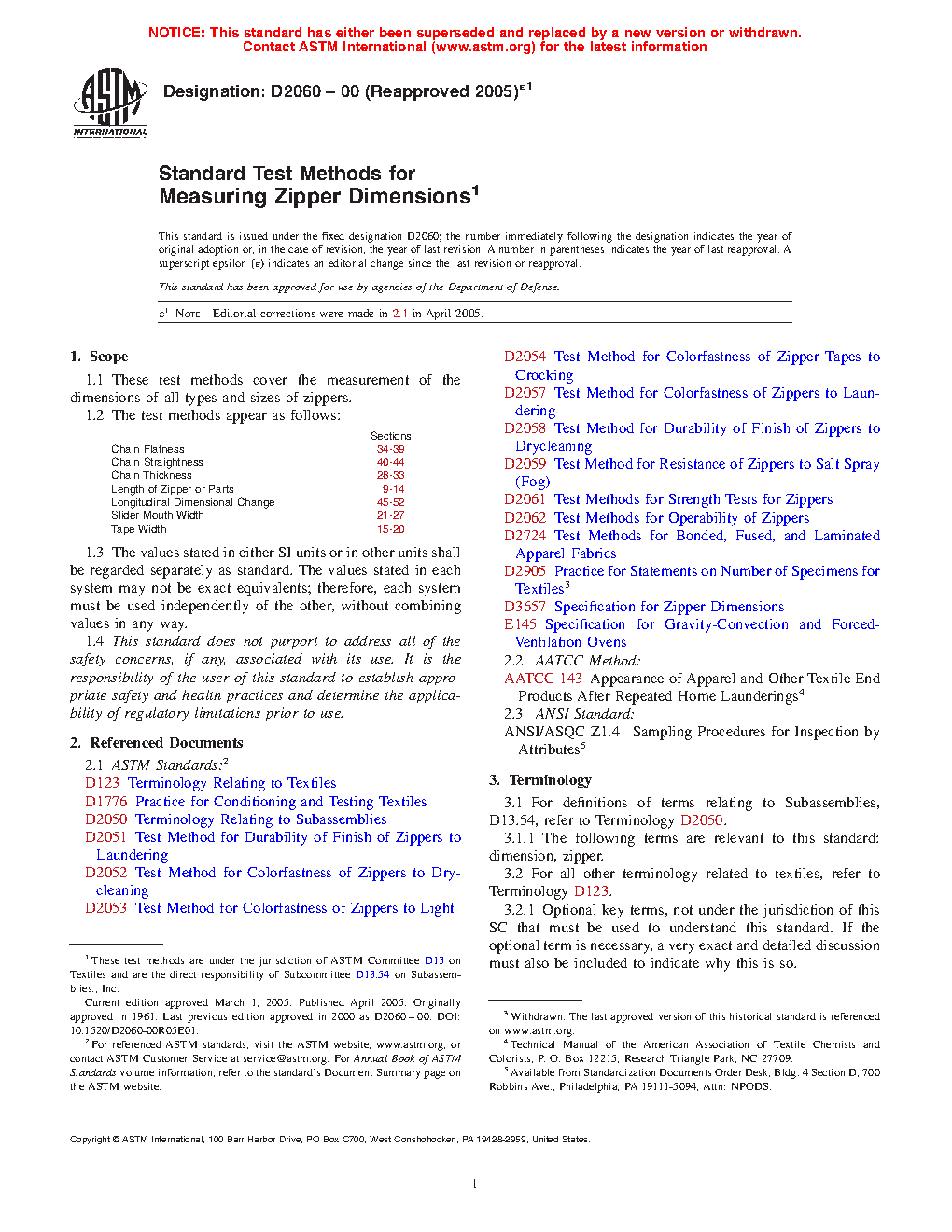1.1 These test methods cover the measurement of the dimensions of all types and sizes of zippers.