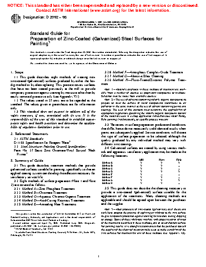 1.1 This guide describes eight methods of treating new zinc-coated (galvanized) surfaces produced by either the hot-dip method or by electroplating. This practice covers surfaces that have not been treated previously at the mill to provide temporary protection against staining by moisture other than by easily removed protective oils (see Appendix X1).