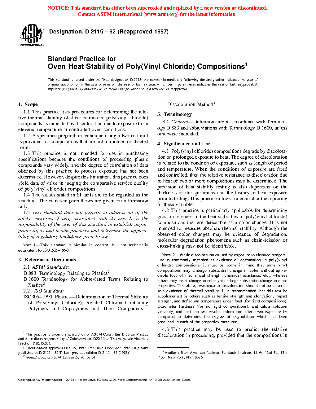 1.3 This practice is not intended for use in purchasing specifications because the conditions of processing plastic compounds vary widely, and the degree of correlation of data obtained by this practice to process exposure has not been determined. However, despite this limitation, this practice does yield data of value in judging the comparative service quality of poly(vinyl chloride) compositions.
