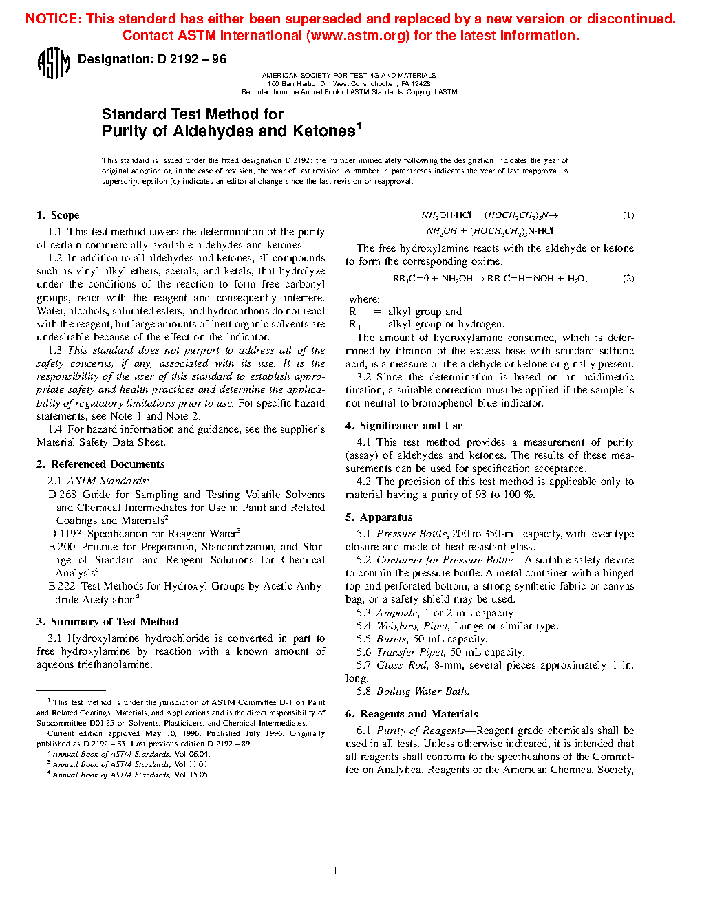 This test method provides a measurement of purity (assay) of aldehydes and ketones. The results of these measurements can be used for specification acceptance.