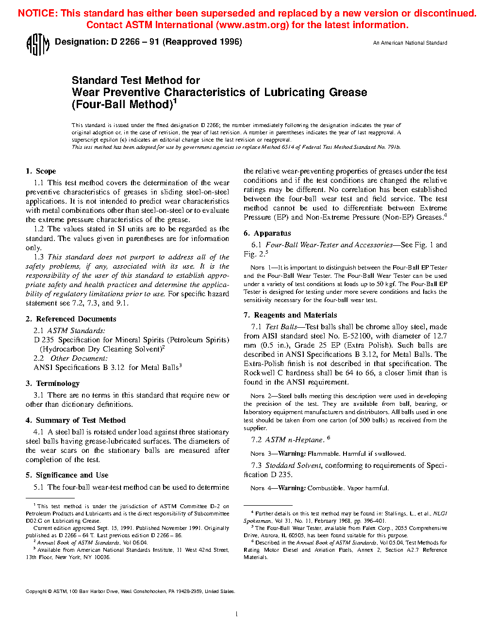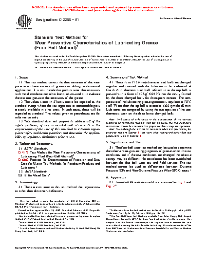 5.1 The four-ball wear-test method can be used to determine the relative wear-preventing properties of greases under the test conditions and if the test conditions are changed the relative ratings may be different. No correlation has been established between the four-ball wear test and field service. The test method cannot be used to differentiate between Extreme Pressure (EP) and Non-Extreme Pressure (Non-EP) Greases.4