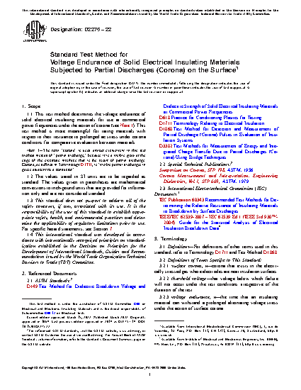 1.1 This test method determines the voltage endurance of solid electrical insulating materials for use at commercial power frequencies under the action of corona (see Note 1). This test method is more meaningful for rating materials with respect to their resistance to prolonged ac stress under corona conditions for comparative evaluation between materials.