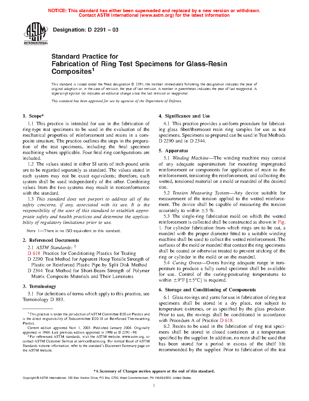 This practice provides a uniform procedure for fabricating glass fiber/thermoset resin ring samples for use as test specimens. Specimens so prepared can be used in Test Methods D 2290