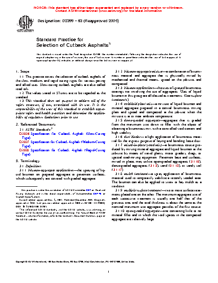 1.1 This practice covers the selection of cutback asphalts of the slow, medium, and rapid curing types for various paving and allied uses. Slow-curing cutback asphalts are also called road oils.