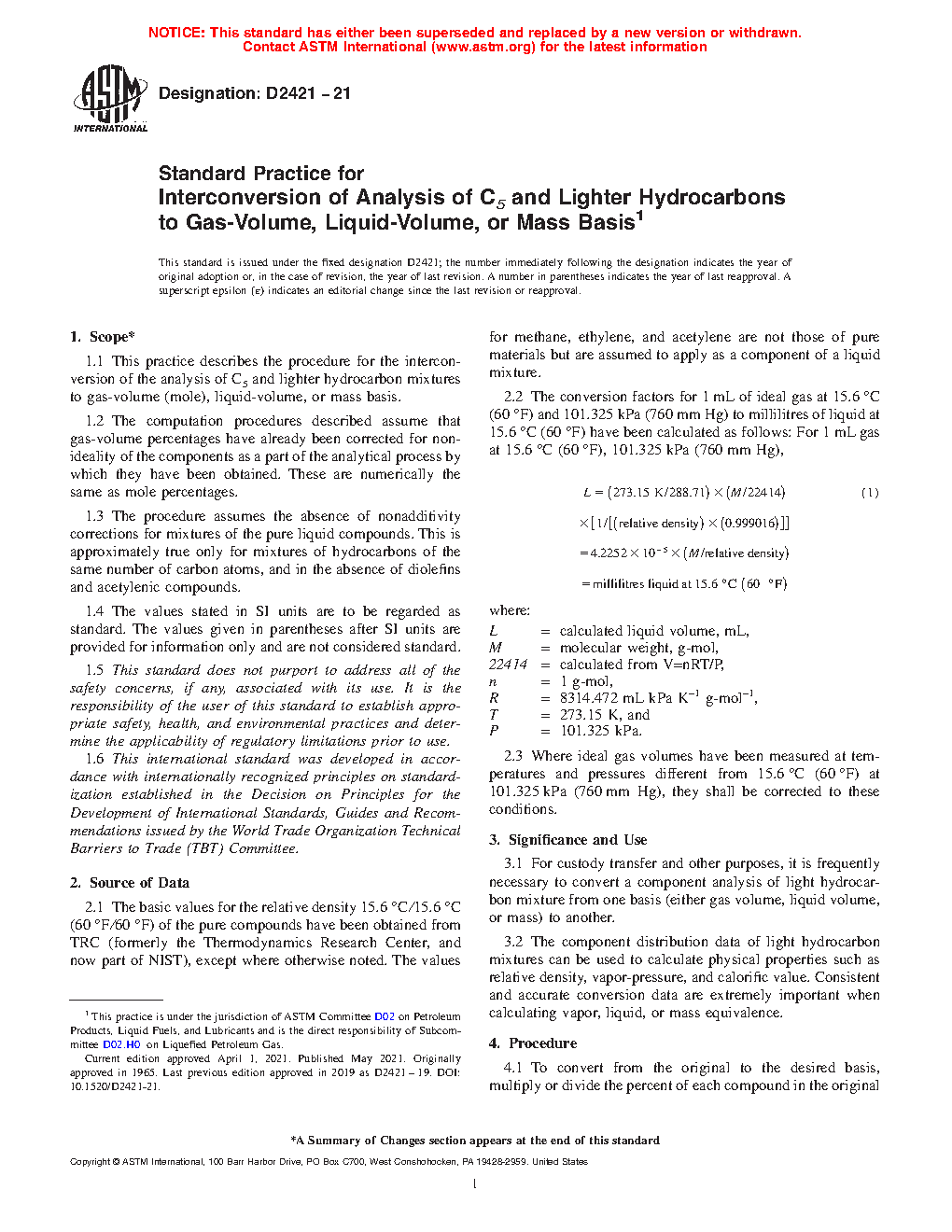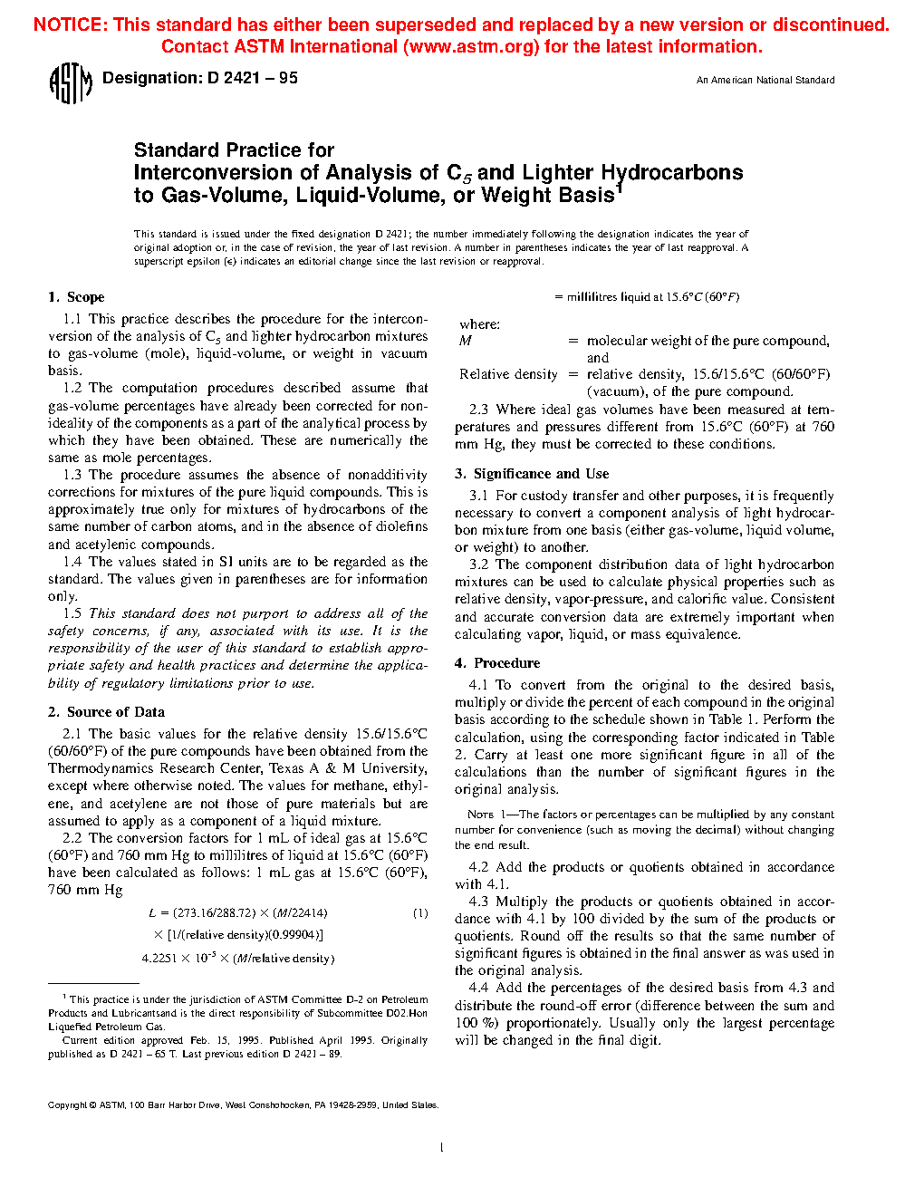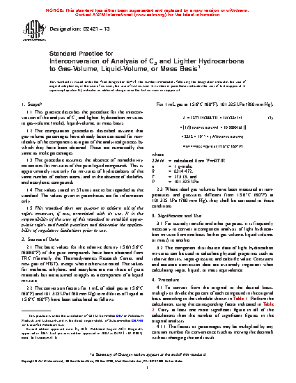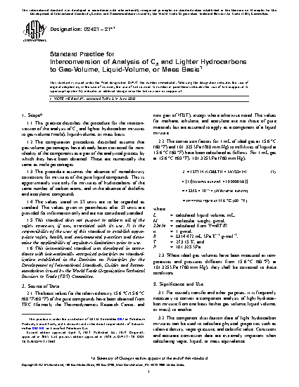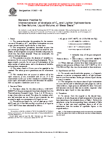 3.1 For custody transfer and other purposes, it is frequently necessary to convert a component analysis of light hydrocarbon mixture from one basis (either gas volume, liquid volume, or mass) to another.