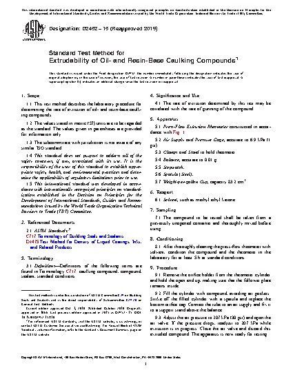 1.1 This test method describes the laboratory procedure for determining the rate of extrusion of oil- and resin-base caulking compounds.
