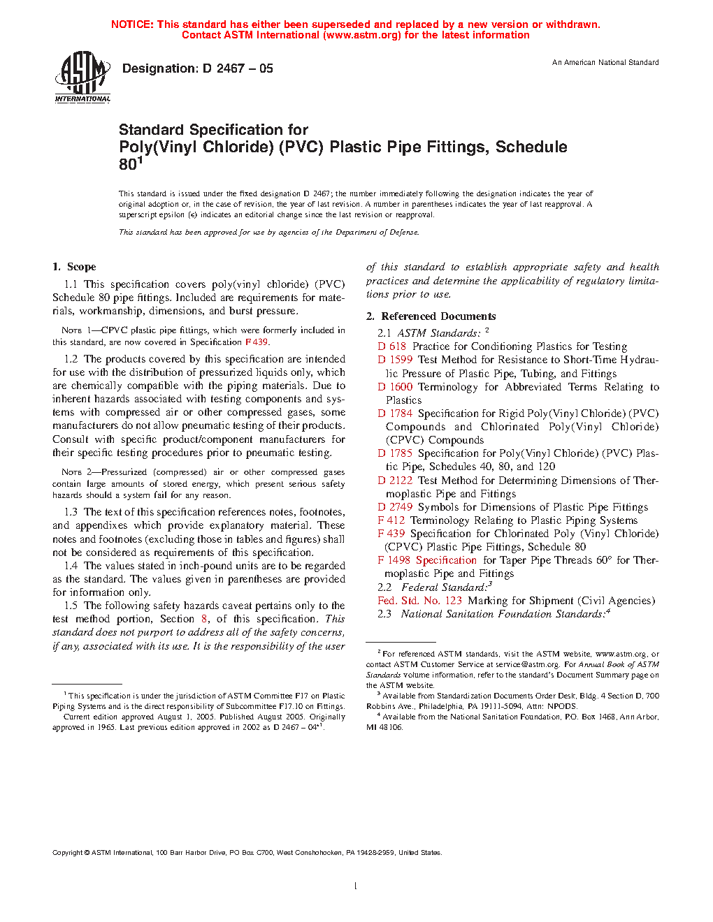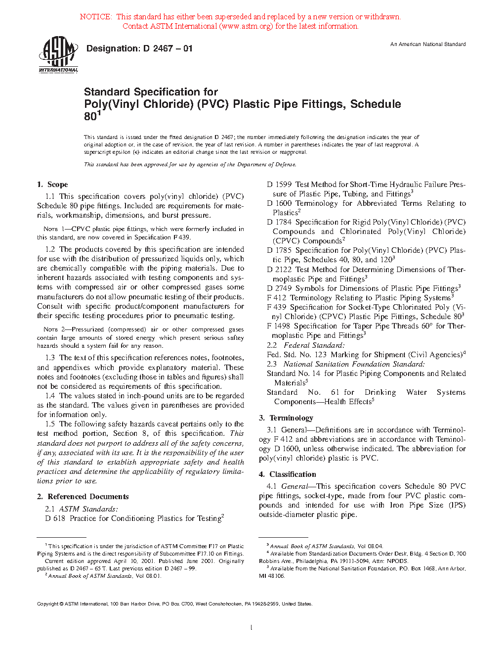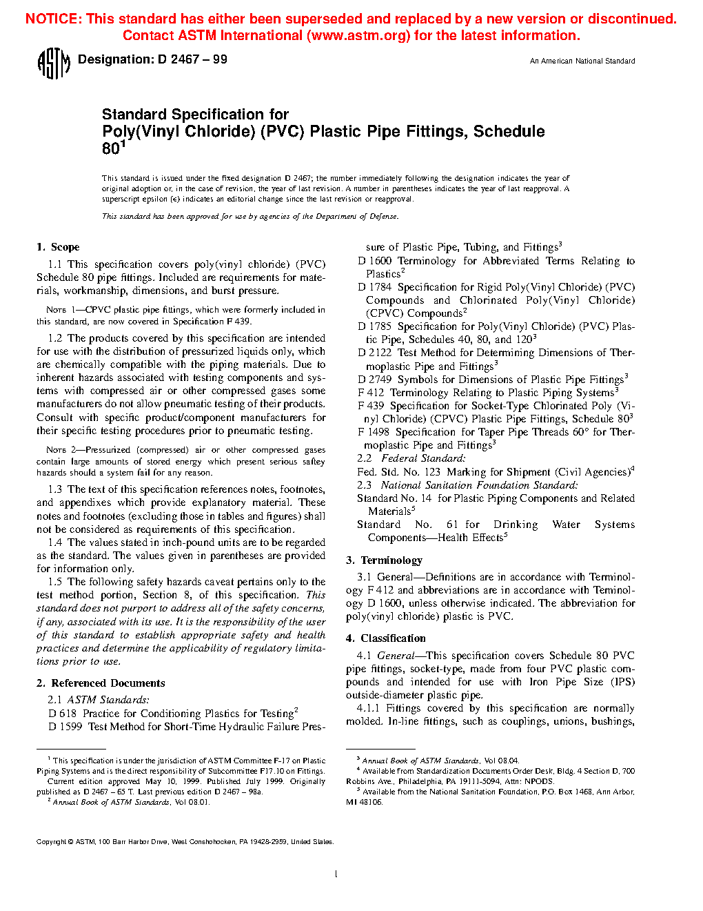 Note 1: CPVC plastic pipe fittings, which were formerly included in this standard, are now covered in Specification F439.
