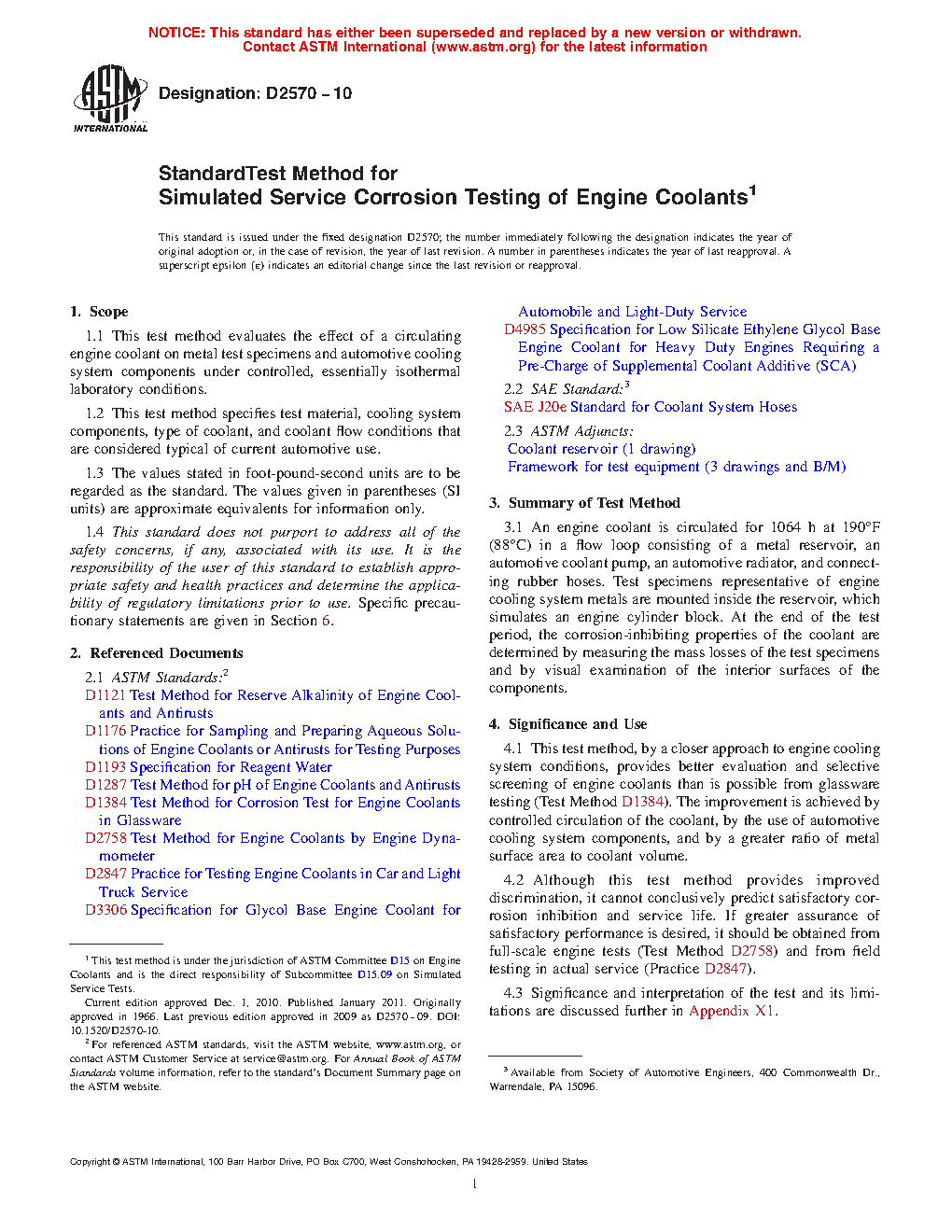1.2 This test method specifies test material, cooling system components, type of coolant, and coolant flow conditions that are considered typical of current automotive use.