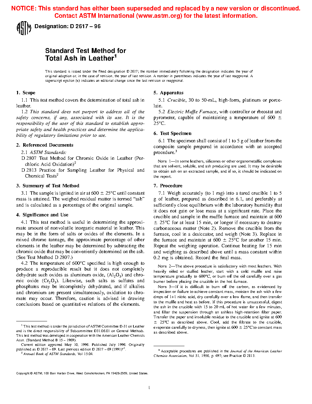 1.1 This test method covers the determination of total ash in leather.