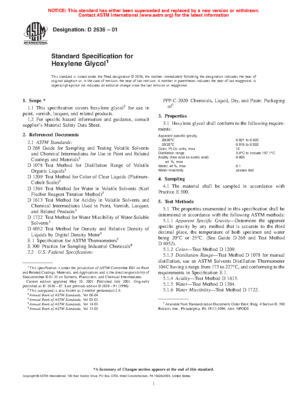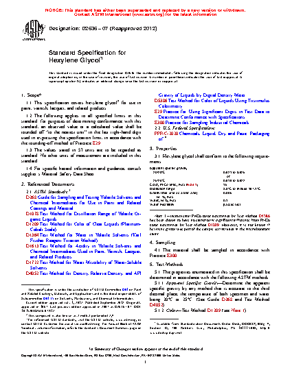 1.1 This specification covers hexylene glycol2 for use in paint, varnish, lacquer, and related products.