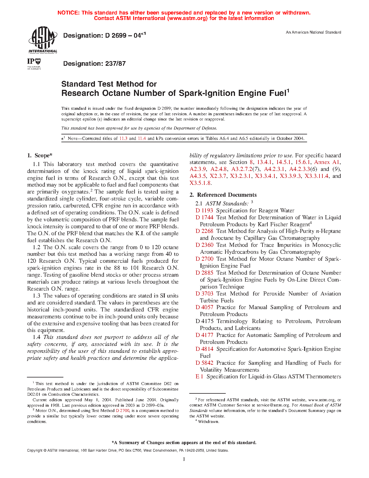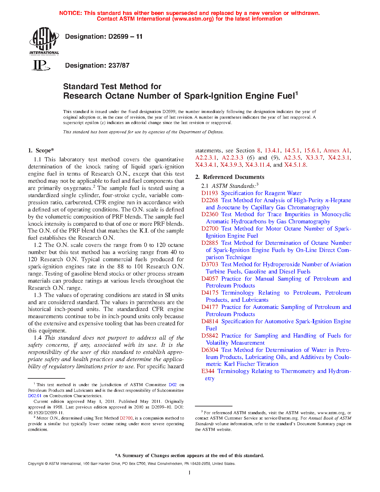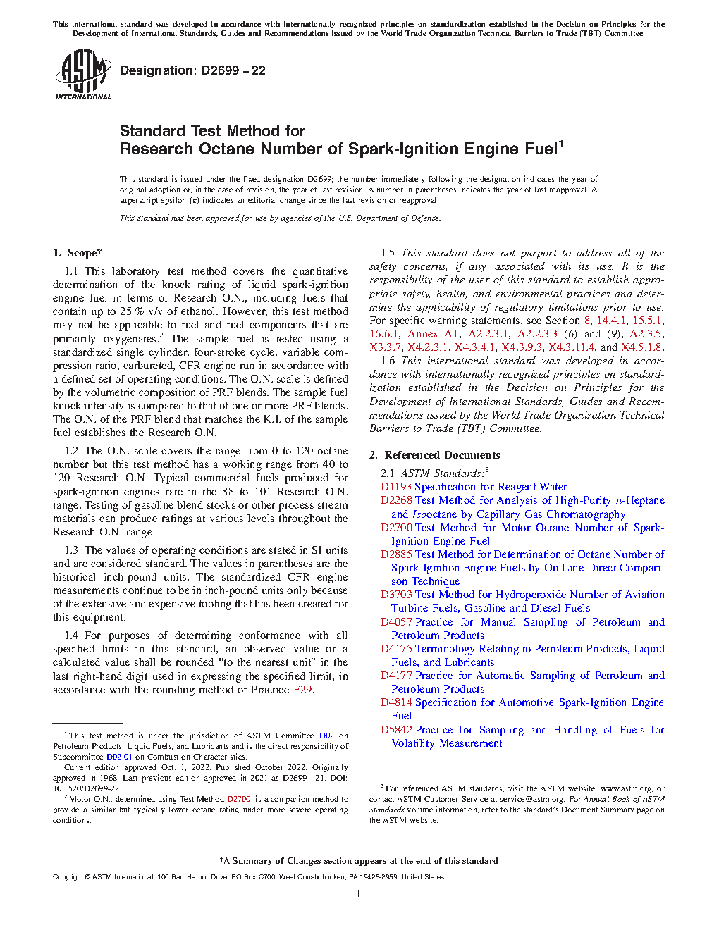 5.3 Research O.N. is used for measuring the antiknock performance of spark-ignition engine fuels that contain oxygenates.