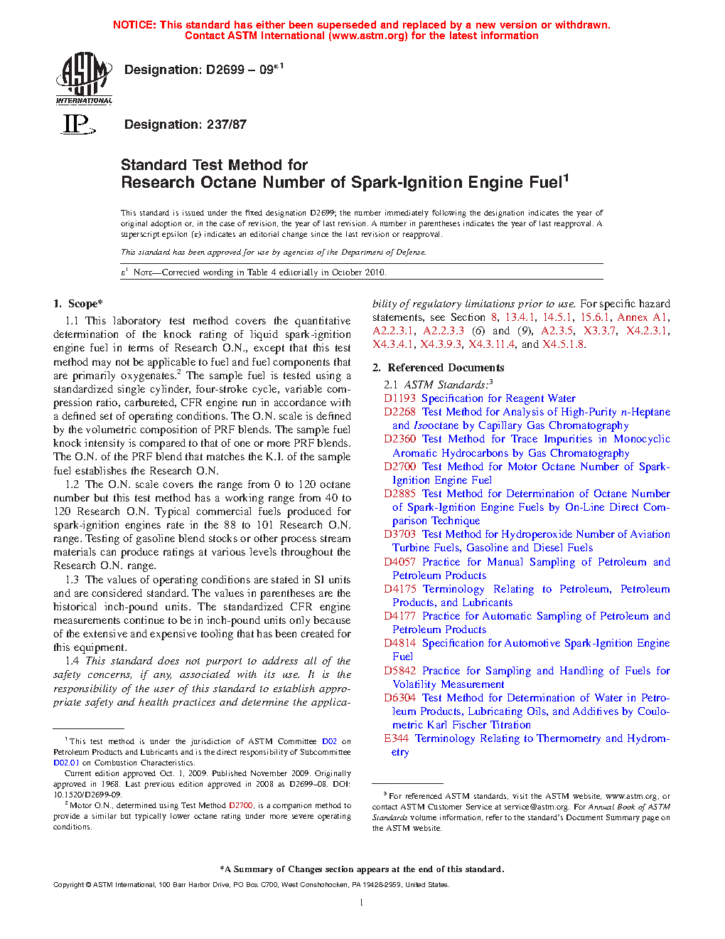 5.2.2 Research O.N., in conjunction with Motor O.N., defines the antiknock index of automotive spark-ignition engine fuels, in accordance with Specification D4814. The antiknock index of a fuel approximates the Road octane ratings for many vehicles, is posted on retail dispensing pumps in the U.S., and is referred to in vehicle manuals.