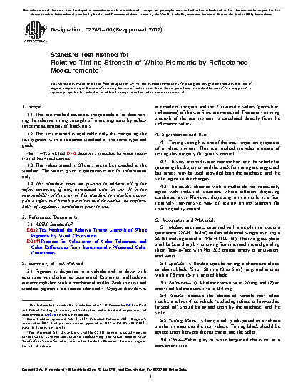 1.1 This test method describes the procedure for determining the relative tinting strength of white pigments by reflectance measurements of black tints.