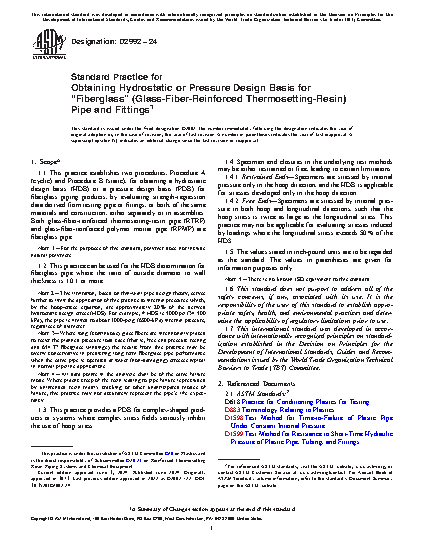 1.1 This practice establishes two procedures, Procedure A (cyclic) and Procedure B (static), for obtaining a hydrostatic design basis (HDB) or a pressure design basis (PDB) for fiberglass piping products, by evaluating strength-regression data derived from testing pipe or fittings, or both, of the same materials and construction, either separately or in assemblies. Both glass-fiber-reinforced thermosetting-resin pipe (RTRP) and glass-fiber-reinforced polymer mortar pipe (RPMP) are fiberglass pipe.