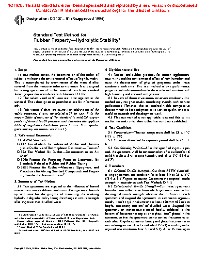 1.1 This test method covers the determination of the ability of rubber to withstand the environmental effects of high humidity. This is accomplished by examination of the material after removal from the moisture-laden environment. It is designed for testing specimens of rubber materials cut from standard sheets prepared in accordance with Practice D3182.