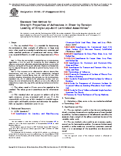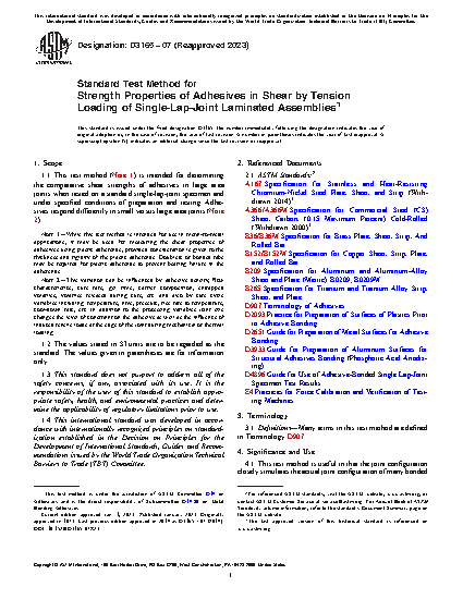 1.1 This test method (Note 1) is intended for determining the comparative shear strengths of adhesives in large area joints when tested on a standard single-lap-joint specimen and under specified conditions of preparation and testing. Adhesives respond differently in small versus large area joints (Note 2).