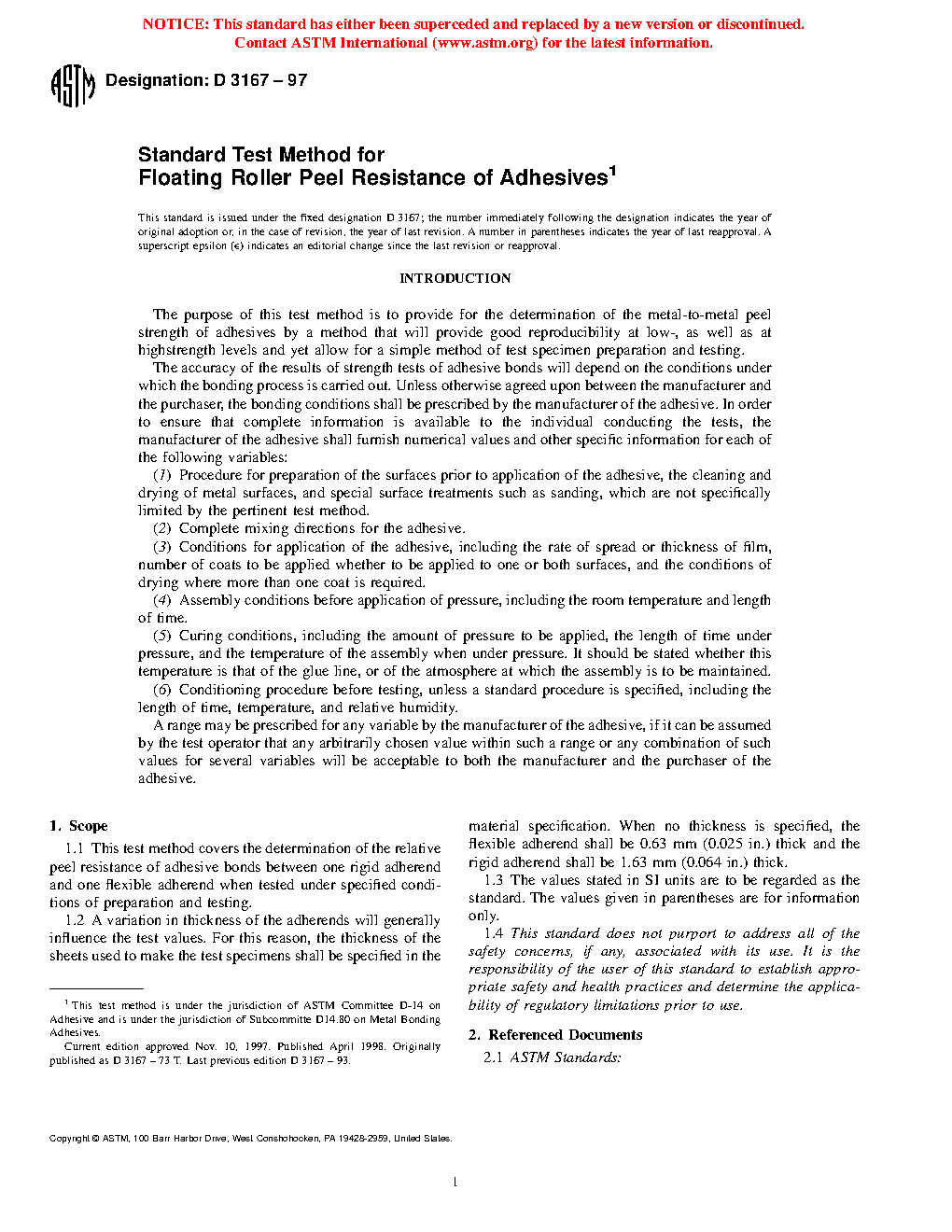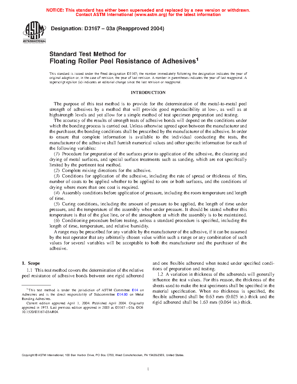 1.2 A variation in thickness of the adherends will generally influence the test values. For this reason, the thickness of the sheets used to make the test specimens shall be specified in the material specification. When no thickness is specified, the flexible adherend shall be 0.63 mm (0.025 in.) thick and the rigid adherend shall be 1.63 mm (0.064 in.) thick.