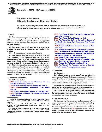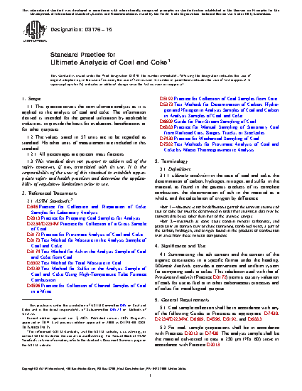 4.1 Summarizing the ash content and the content of the organic constituents in a specific format under the heading, Ultimate Analysis, provides a convenient and uniform system for comparing coals or cokes. This tabulation used with that of Proximate Analysis (Practice D3172) permits cursory valuation of coals for use as fuel or in other carbonaceous processes and of cokes for metallurgical purpose.