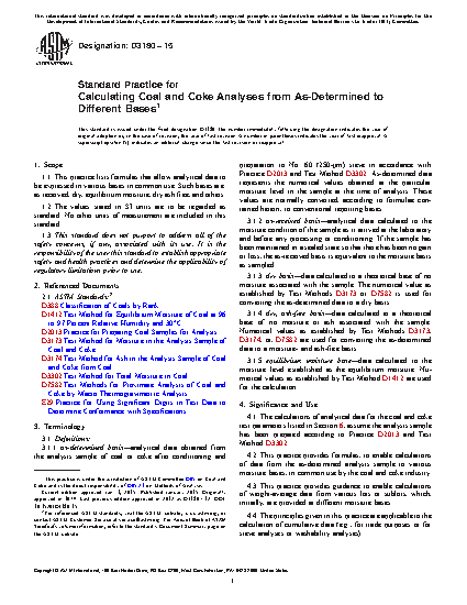 4.2 This practice provides formulas, to enable calculations of data from the as-determined analysis sample to various moisture bases, in common use by the coal and coke industry.