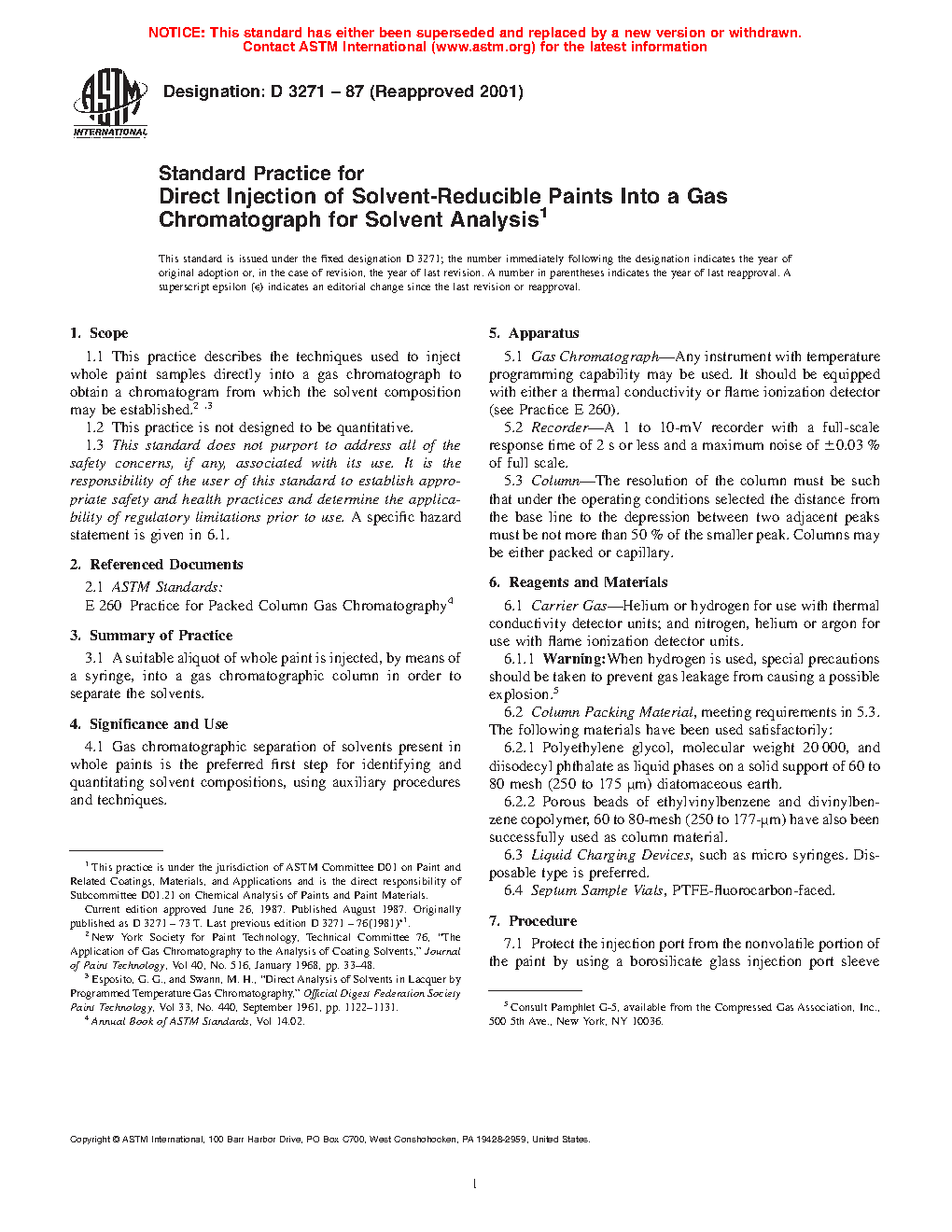 Standard Practice for Direct Injection of Solvent-Reducible Paints Into a Gas Chromatograph for Solvent Analysis