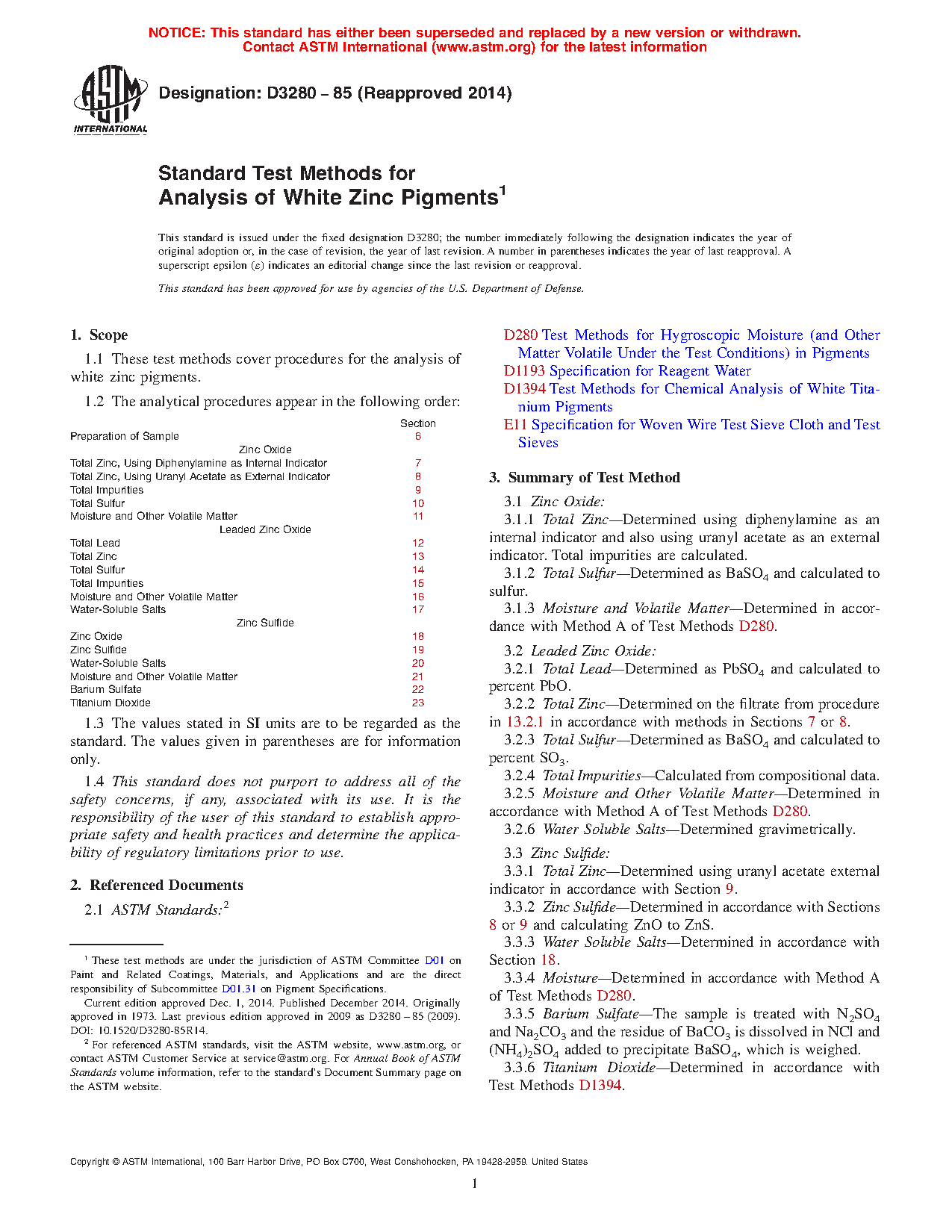 1.1 These test methods cover procedures for the analysis of white zinc pigments.