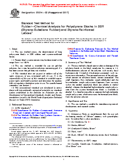 1.1 This test method covers the determination of long polystyrene blocks in SBR rubbers and styrene-reinforced latices.