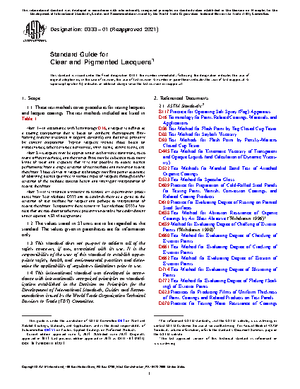 3.1 These test methods are intended to compile as well as provide screening tests in evaluating clear and pigmented lacquers as used in different coating operations.