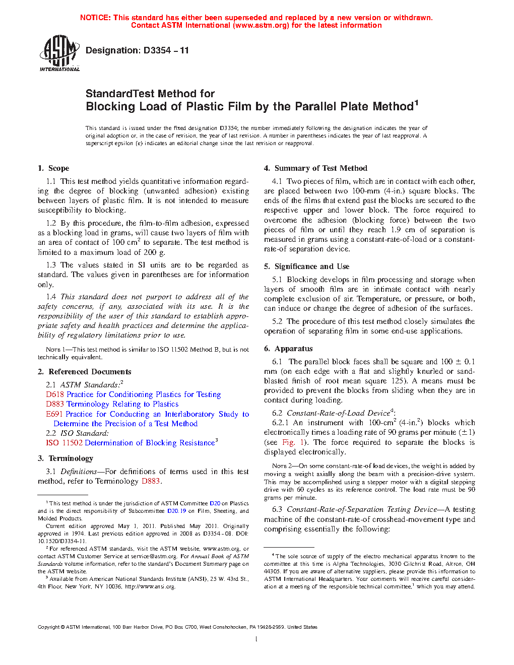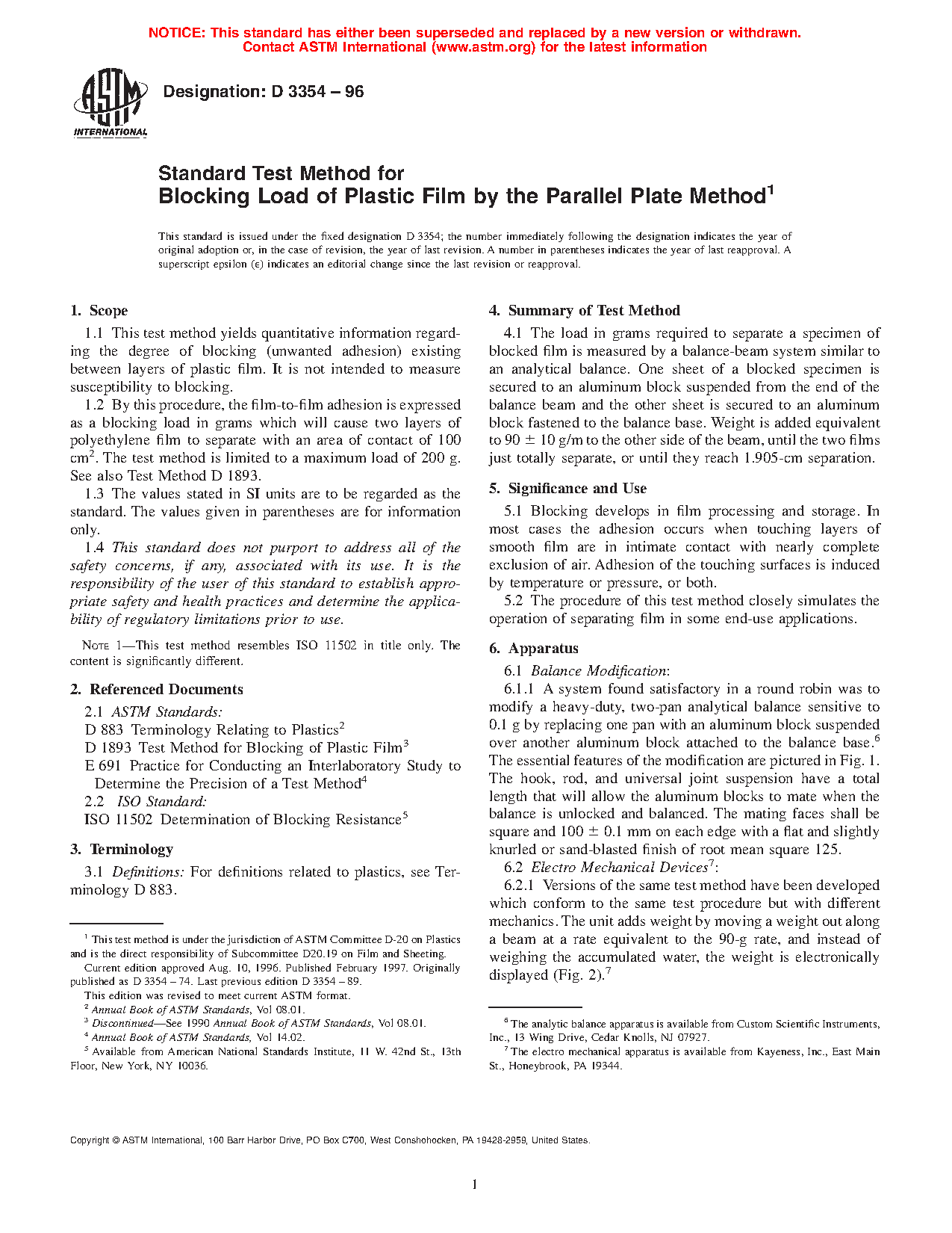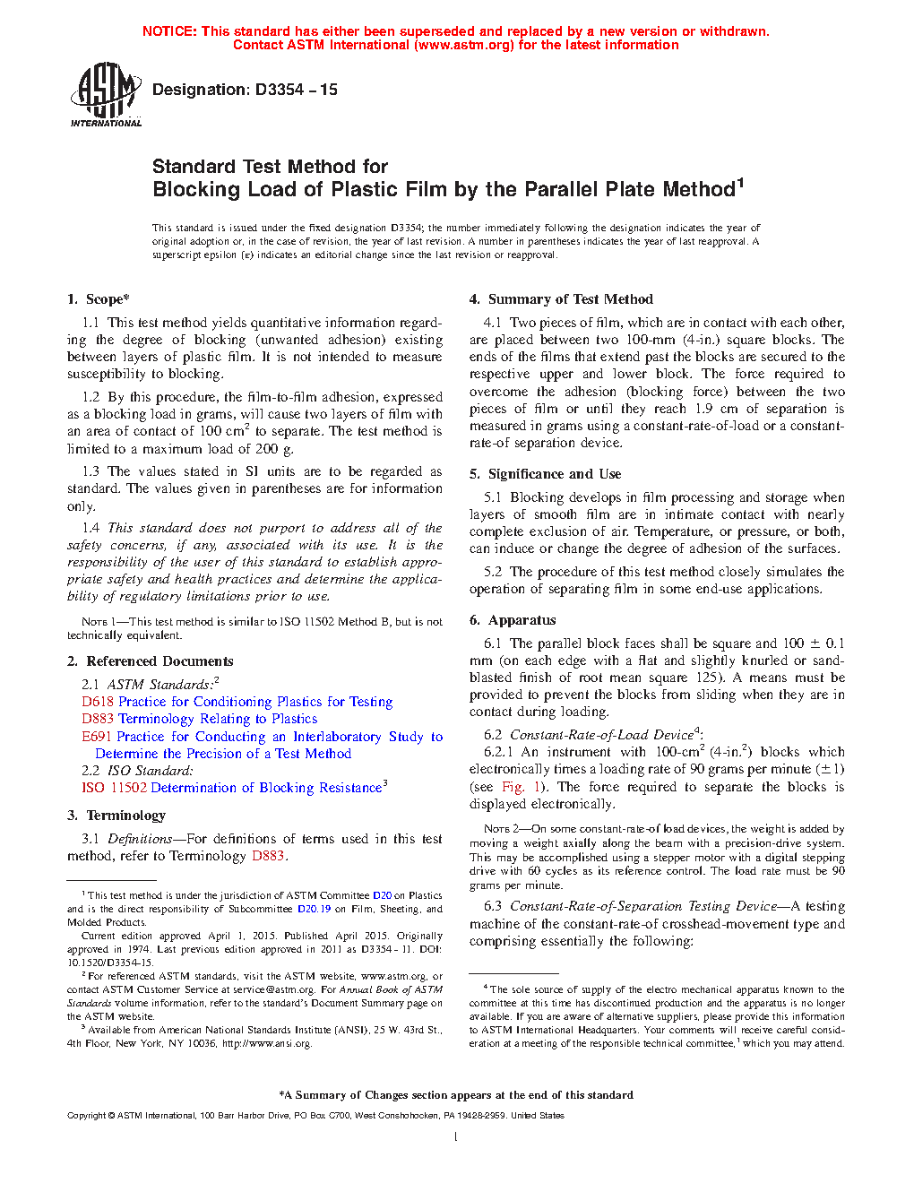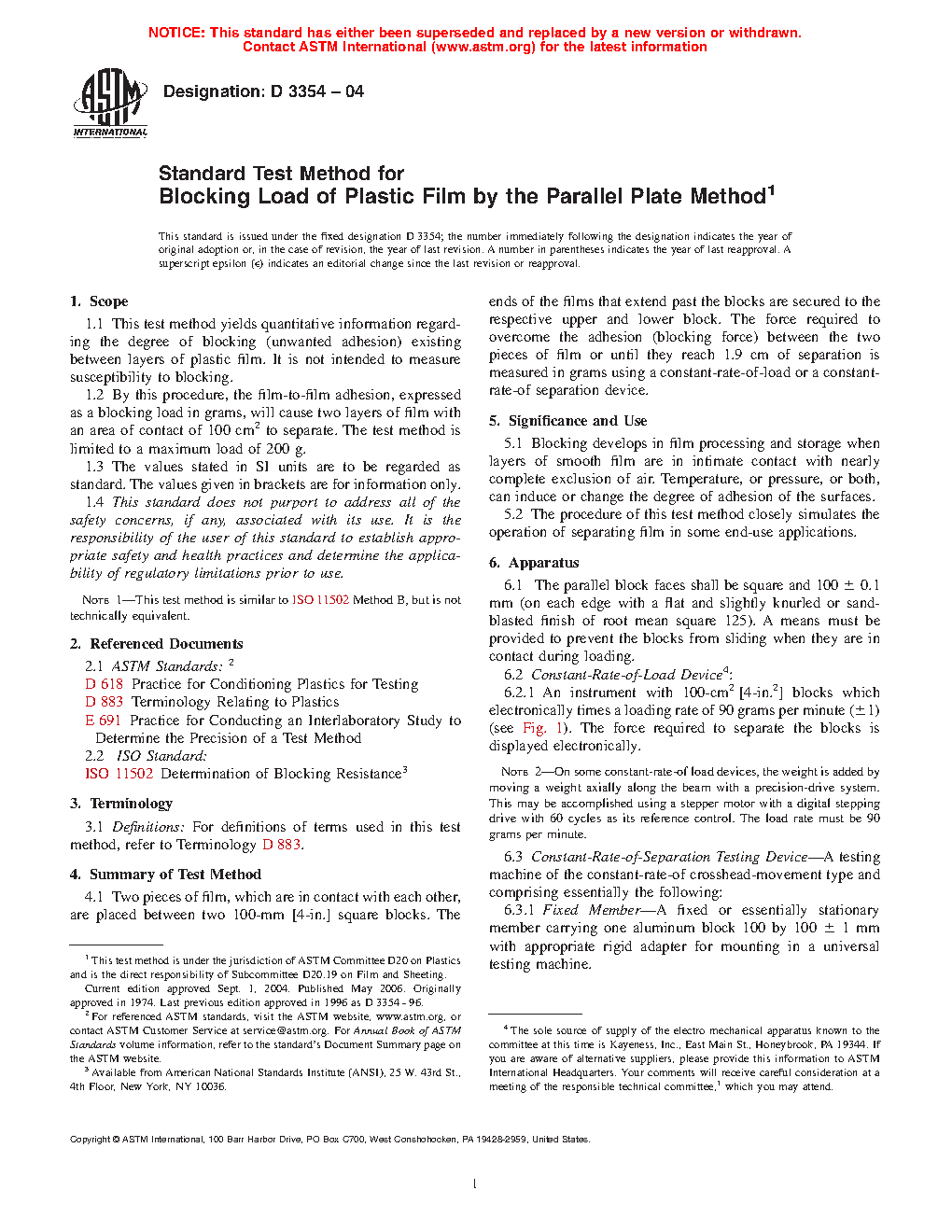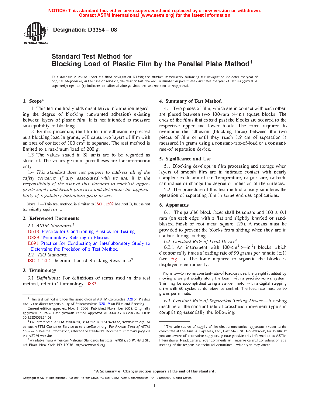 1.2 By this procedure, the film-to-film adhesion, expressed as a blocking load in grams, will cause two layers of film with an area of contact of 100 cm2 to separate. The test method is limited to a maximum load of 200 g.