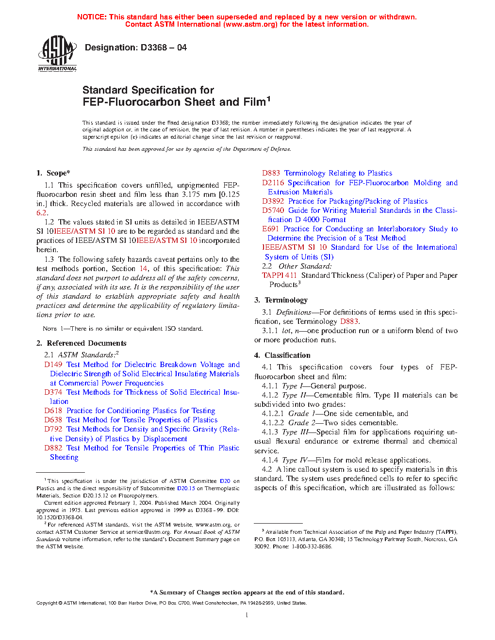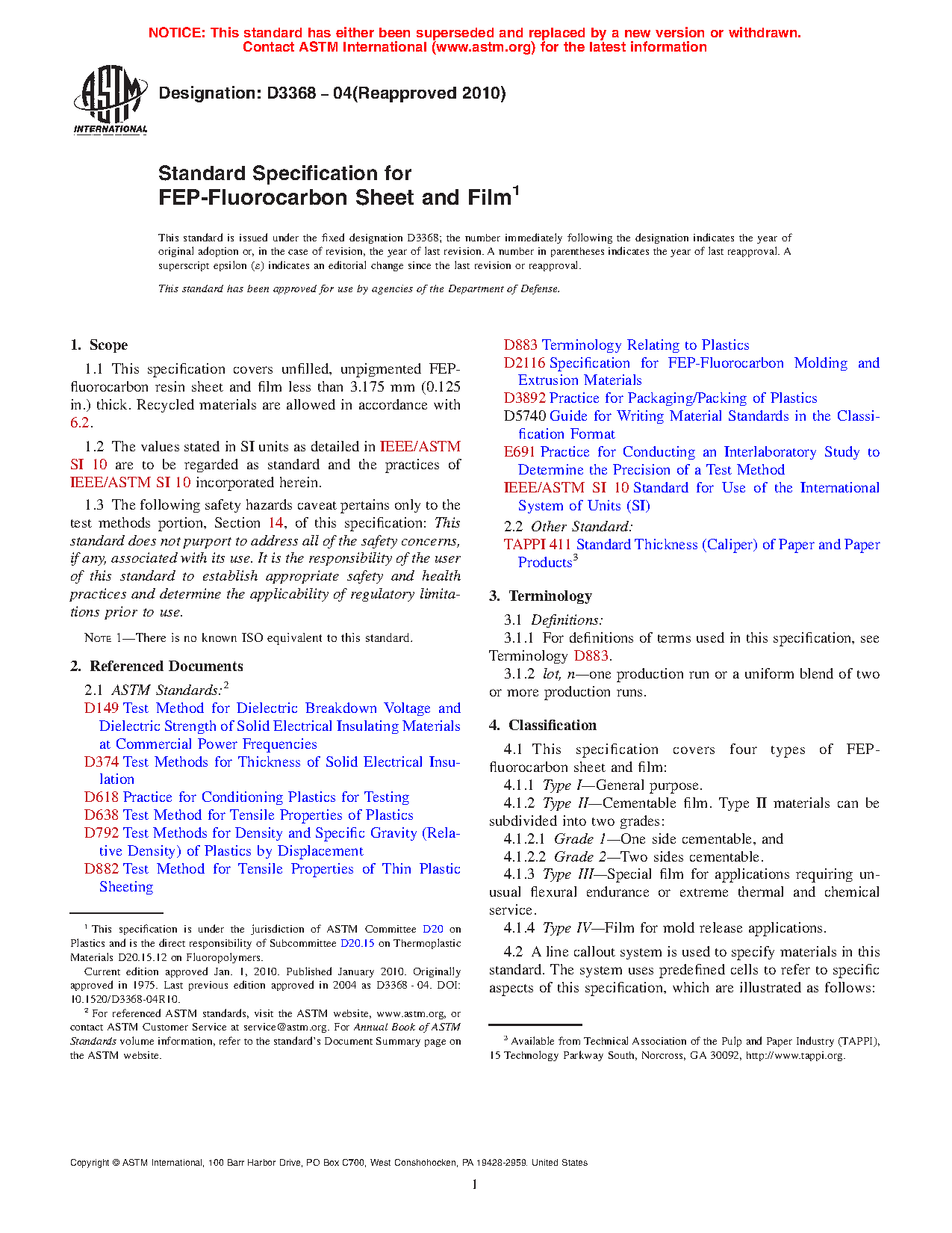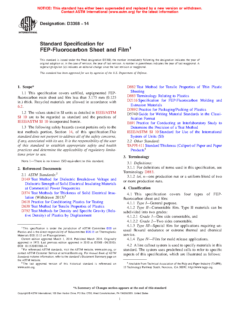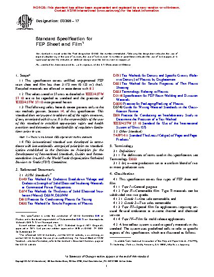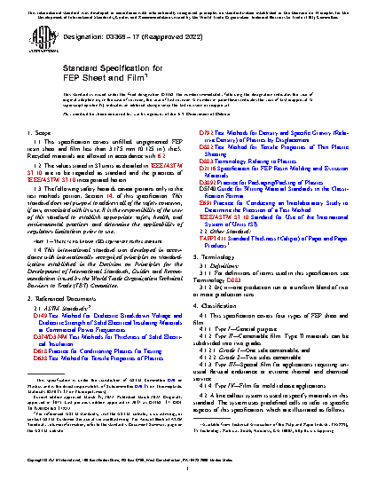 1.1 This specification covers unfilled, unpigmented FEP-fluorocarbon resin sheet and film less than 3.175 mm [0.125 in.] thick. Recycled materials are allowed in accordance with .