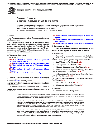 1.1 This guide covers procedures for the chemical analysis of white pigments.