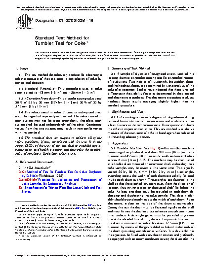1.2 Standard Procedure—This procedure uses a coke sample sized to −75 mm [−3 in.] and + 50 mm [ + 2 in.].
