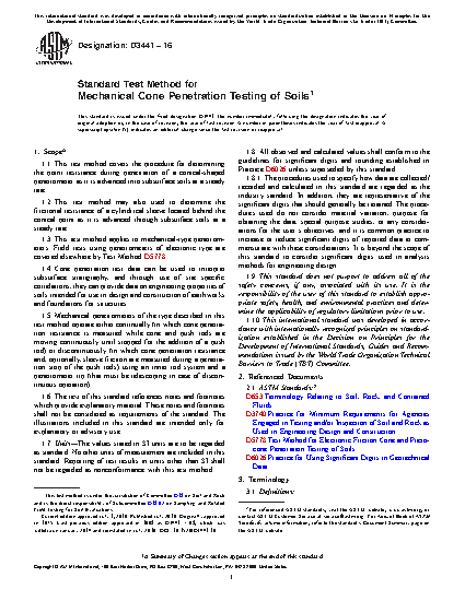 1.1 This test method covers the procedure for determining the point resistance during penetration of a conical-shaped penetrometer as it is advanced into subsurface soils at a steady rate.