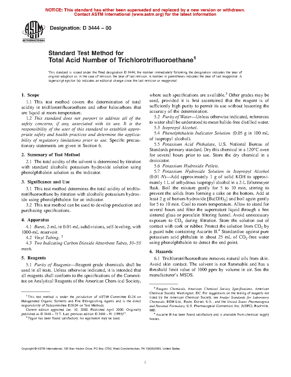 3.1 This test method determines the total acidity of trichlorotrifluoroethane by titration with alcoholic potassium hydroxide using phenolphthalein for an indicator.
