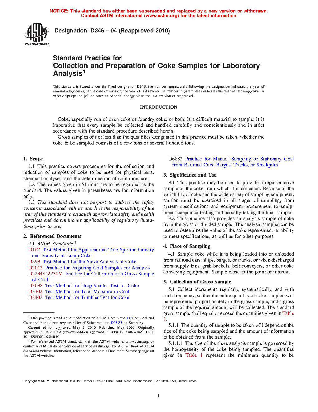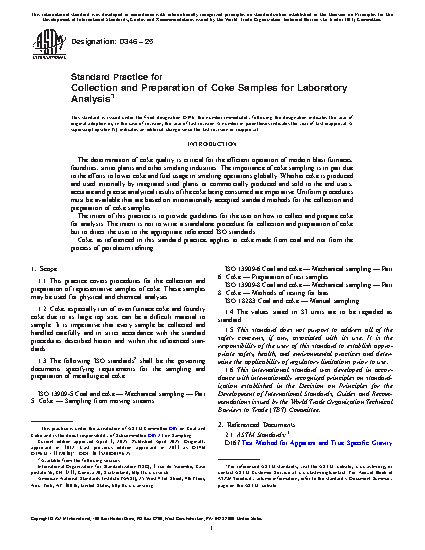 1.3 The following ISO standards2 shall be the governing documents specifying requirements for the sampling and preparation of metallurgical coke: