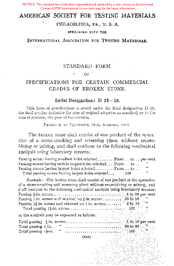 Specification for Certain Commercial Grades of Broken Stone (Withdrawn 1937)