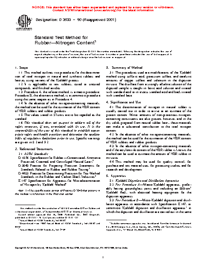 1.4 In the absence of other nitrogen-containing materials, the method can be used for the estimation of the NBR content of NBR rubbers and rubber products.
