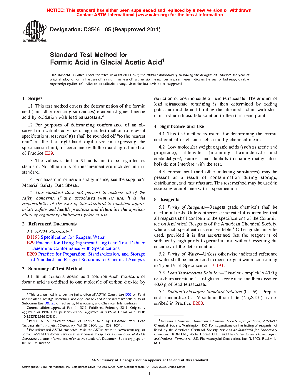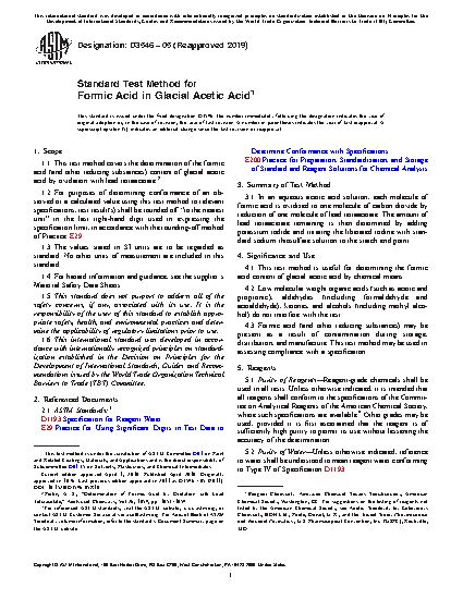 1.1 This test method covers the determination of the formic acid (and other reducing substances) content of glacial acetic acid by oxidation with lead tetraacetate².