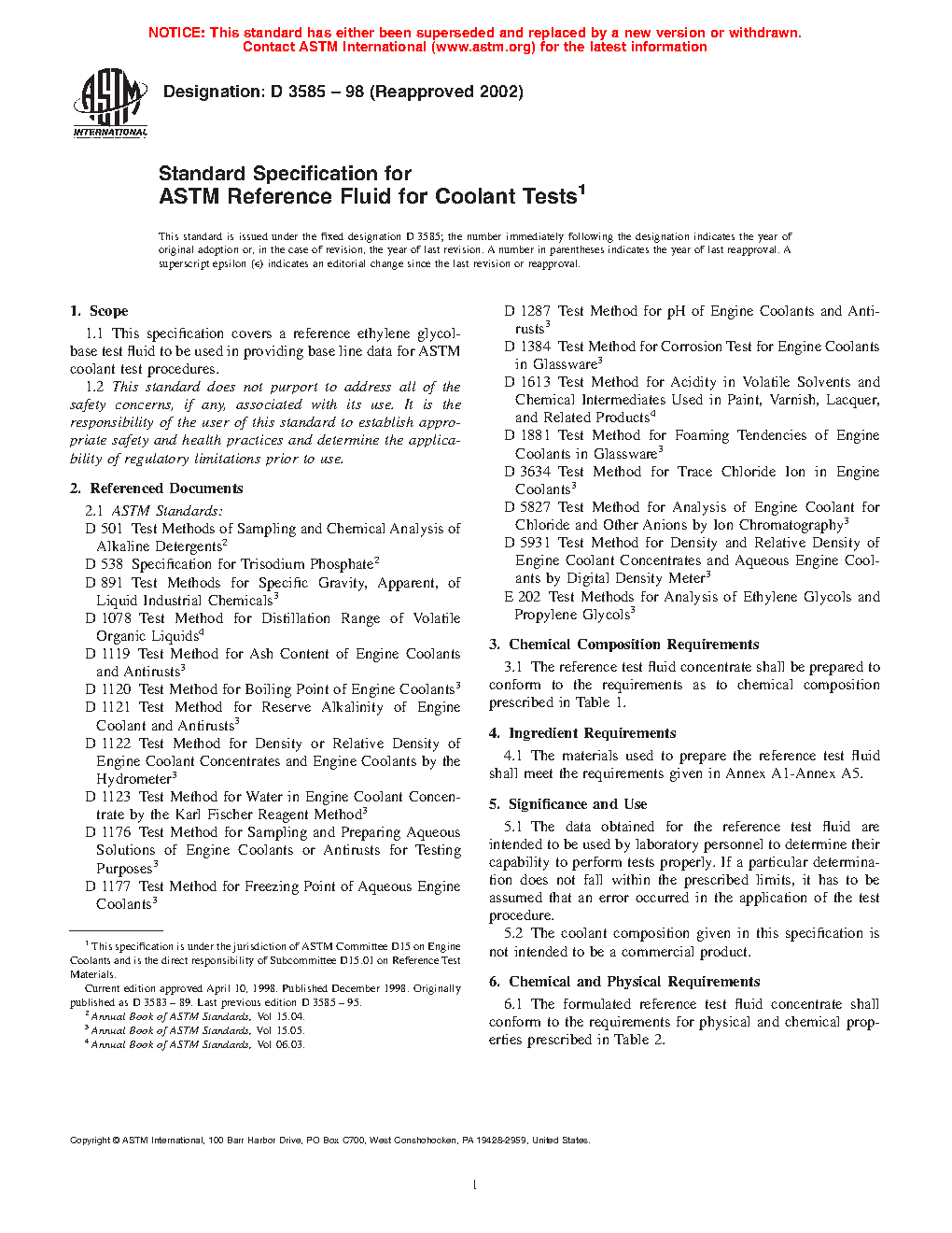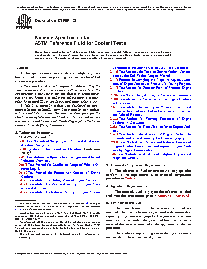 1.1 This specification covers a reference ethylene glycol-base test fluid to be used in providing base line data for ASTM coolant test procedures.