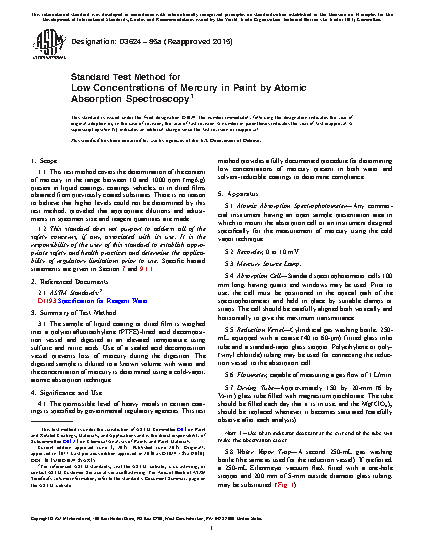 The permissible level of heavy metals in certain coatings is specified by governmental regulatory agencies. This test method provides a fully documented procedure for determining low concentrations of mercury present in both water and solvent-reducible coatings to determine compliance.
