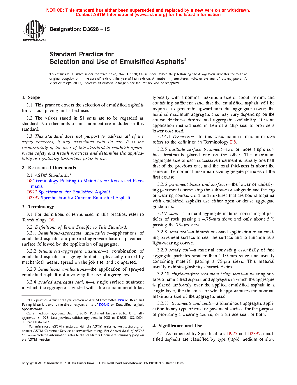Standard Practice for Selection and Use of Emulsified Asphalts