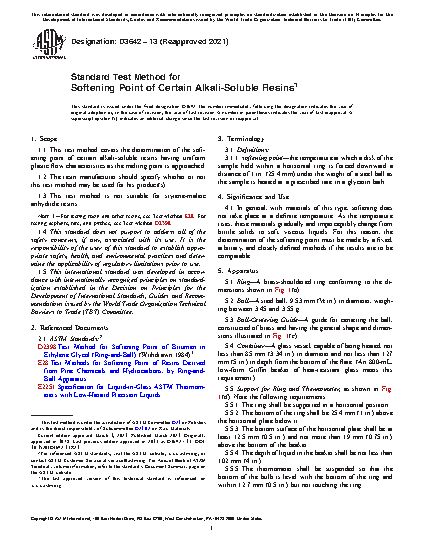 1.1 This test method covers the determination of the softening point of certain alkali-soluble resins having uniform plastic flow characteristics as the melting point is approached.