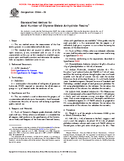 This test method is used to determine the property of styrene-maleic anhydride resins functionality. Acid functionality determines the utility of resin as well as being a significant quality control test.